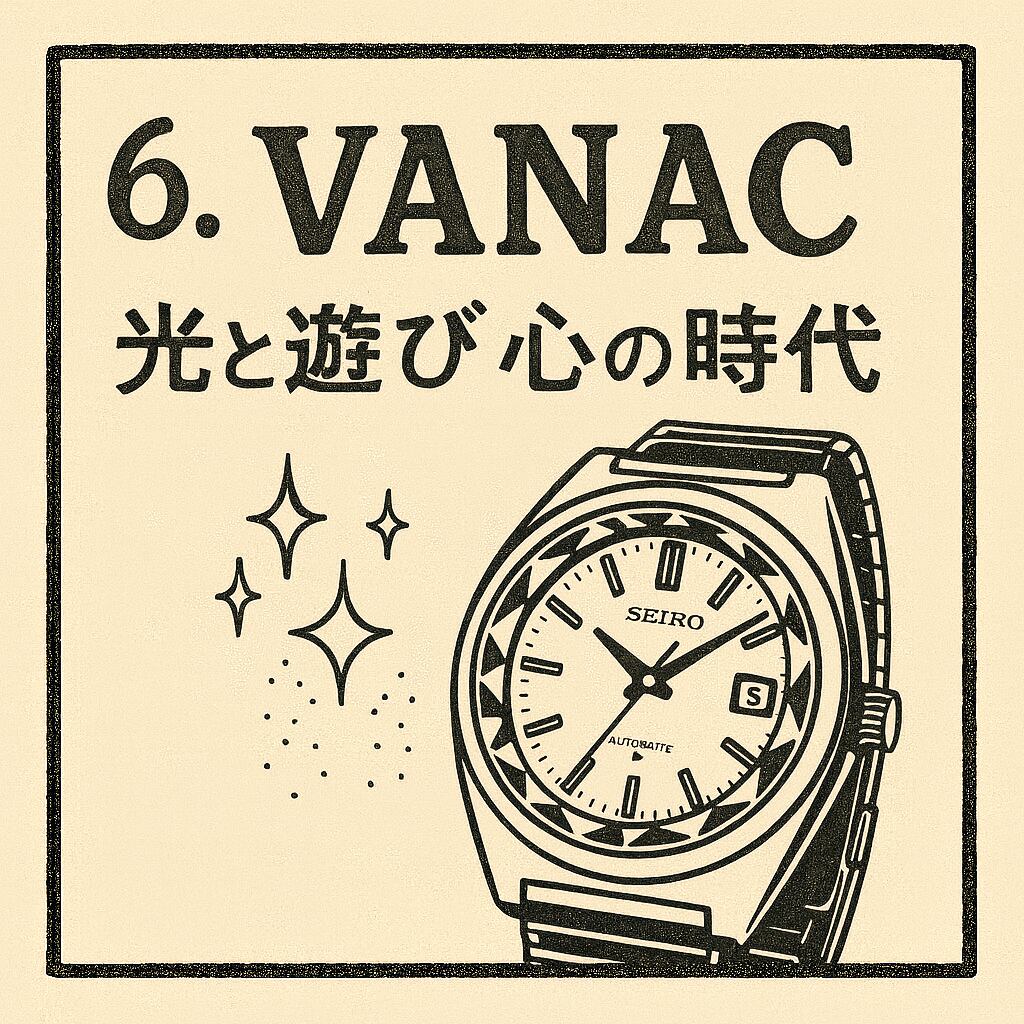 史実背景: セイコースタイルの原型が確立。稜線の美しさと精度の融合。